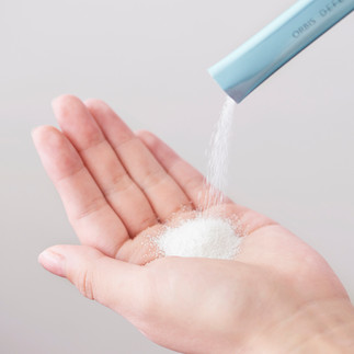 <「飲む」ケアにこだわる3つの理由> 1.顔だけでなく、「背」「手・ひじ」「足先・すね」など全身へ 2.化粧水のように何回も塗り直し不要。手間いらず! 3.時間も場所も選ばない!1日1包、15秒で全身うるおいケア